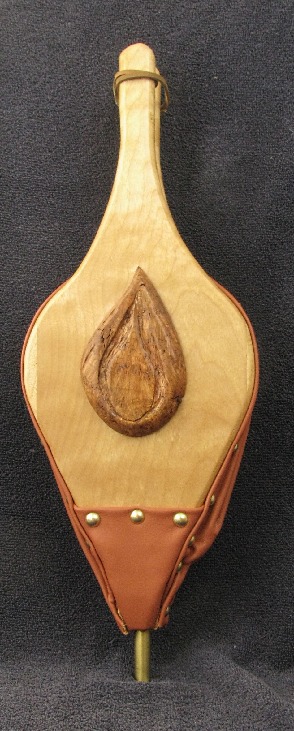 Recently, a friend gave Roy a cherry burl to add to his collection. He used a piece of this burl to create our latest burl flame bellows.
